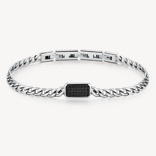 Stainless Steel Chain Bracelet with Black CZ by Brosway