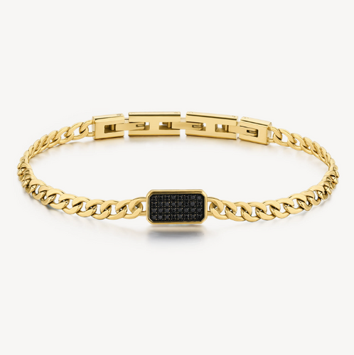 Stainless Steel Gold Chain Bracelet with Black CZ by Brosway