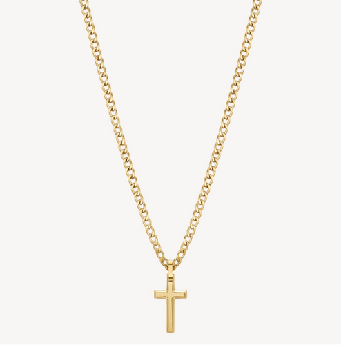 Stainless Steel Gold Necklace with Cross Shaped Pendant Long by Brosway