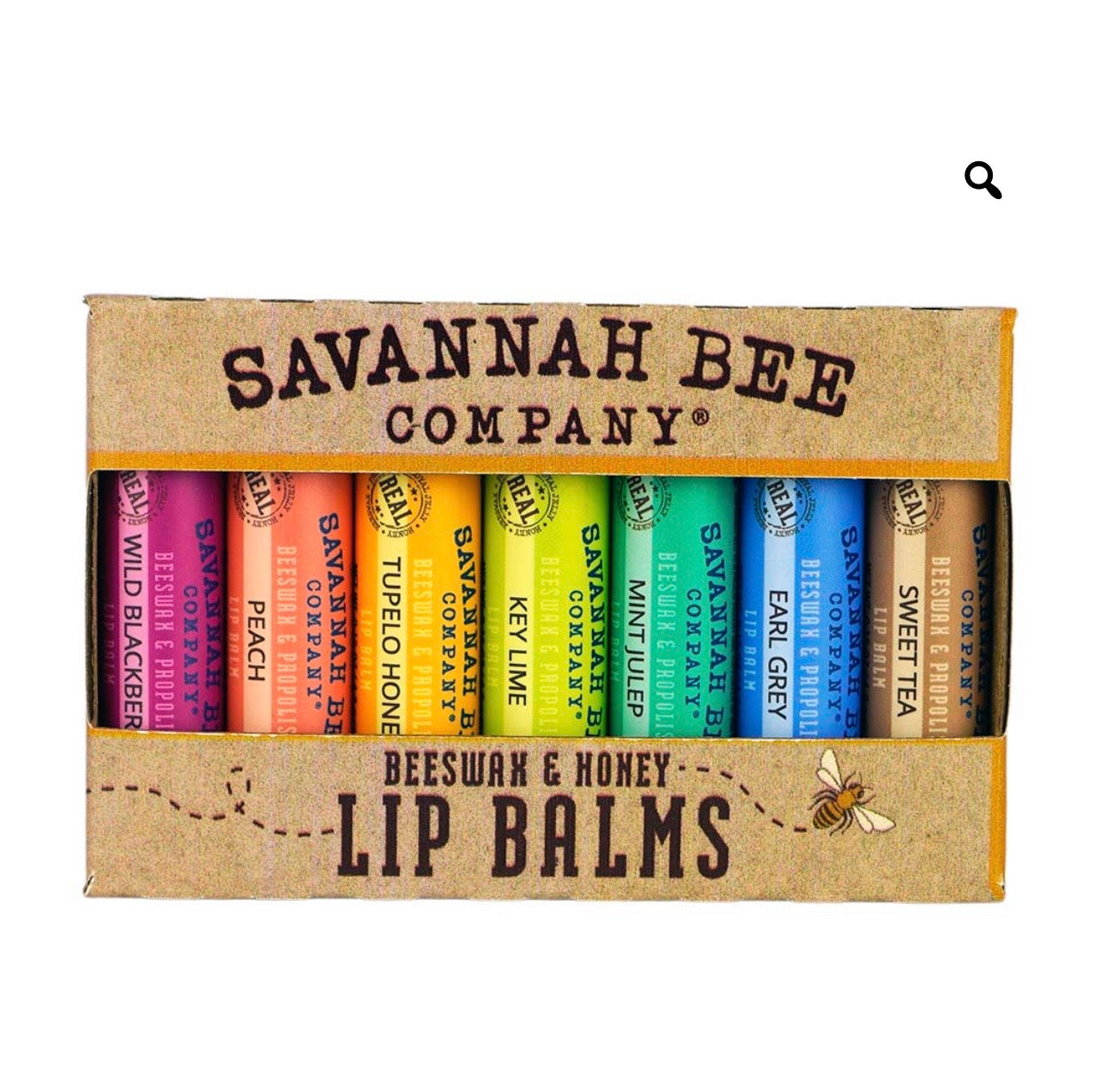 Includes seven Savannah Bee Company Beeswax Lip Balms:
