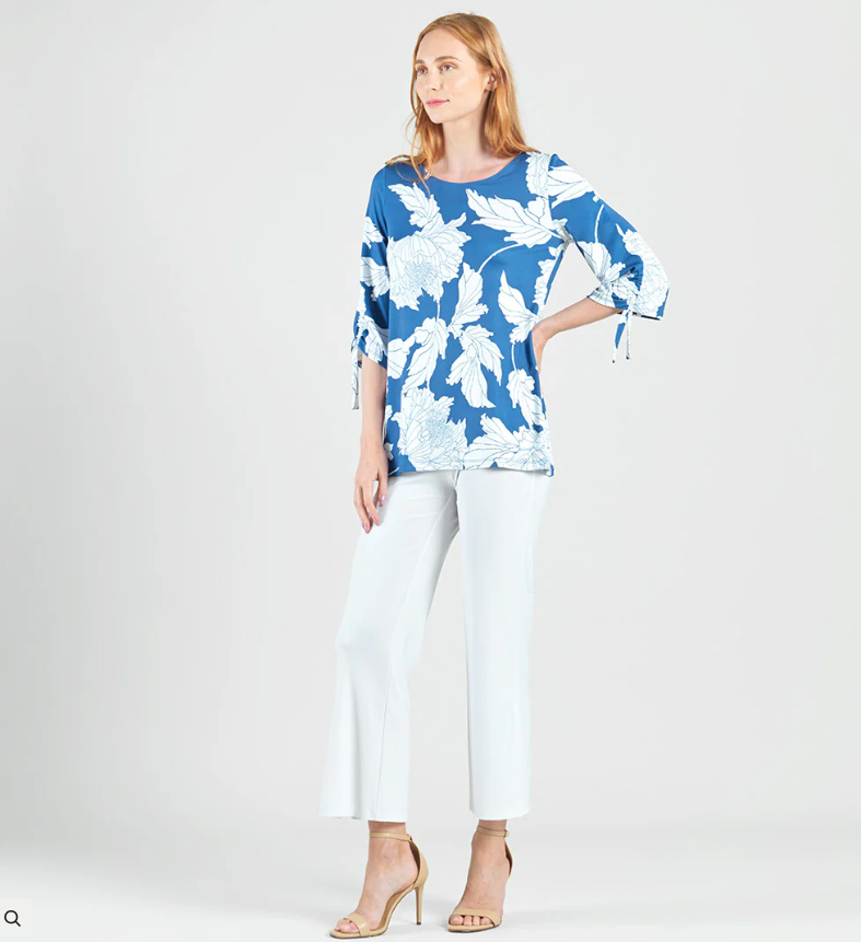 In a garden of style, draw the right amount of attention in our Mum Sketch Butter Knit Pull-Tie Cuff Tunic! This elegant tunic features a wide neckline, relaxed elbow-length sleeves with pull-tie cuffs, designed to allow you to adjust the sleeve for a custom ruched effect, and a straight hemline.