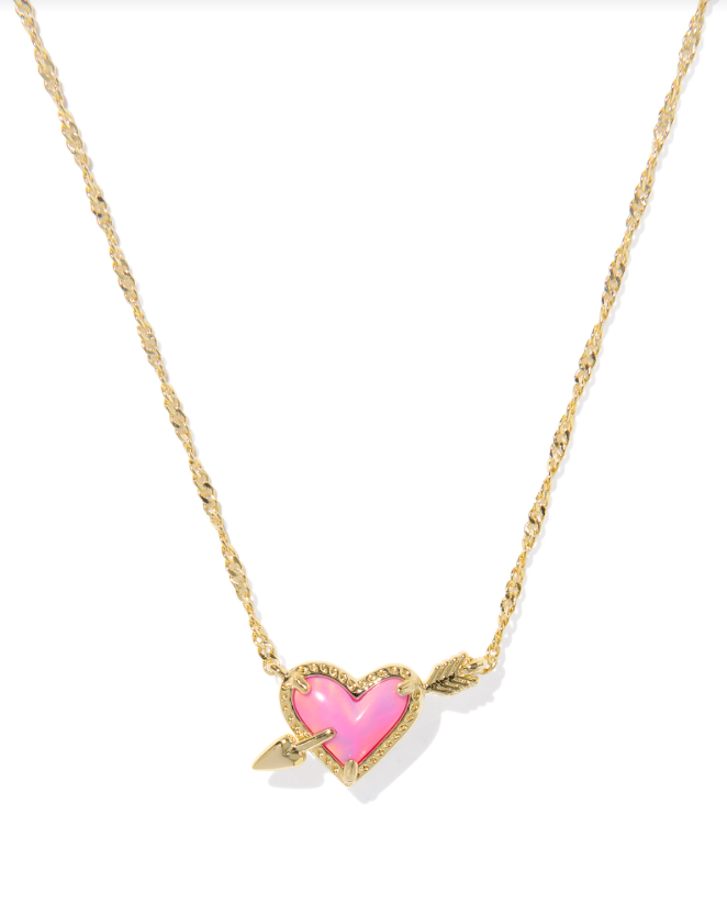 Kendra Scott Ari Heart Arrow Pendant Necklace Pink Opal