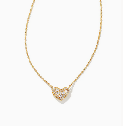 Kendra Scott Gold Ari Pave Crystal Heart Necklace In White Crystal