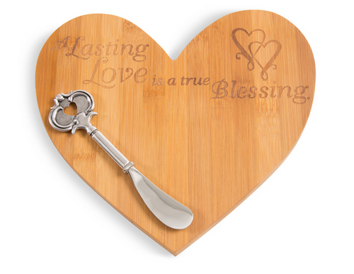 Lasting Love Bamboo Cheese Board with Spreader