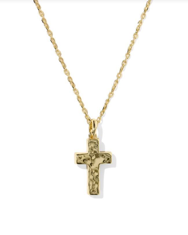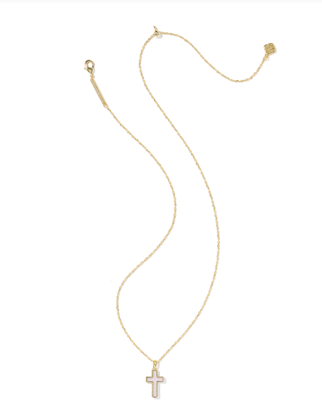 A personal reminder to add to your everyday collection. Keep a symbol of what's most meaningful to you close with the Cross Gold Pendant Necklace. This significant style features a cross-shaped stone with a metallic border on an adjustable chain, making it a beautiful and beloved piece.