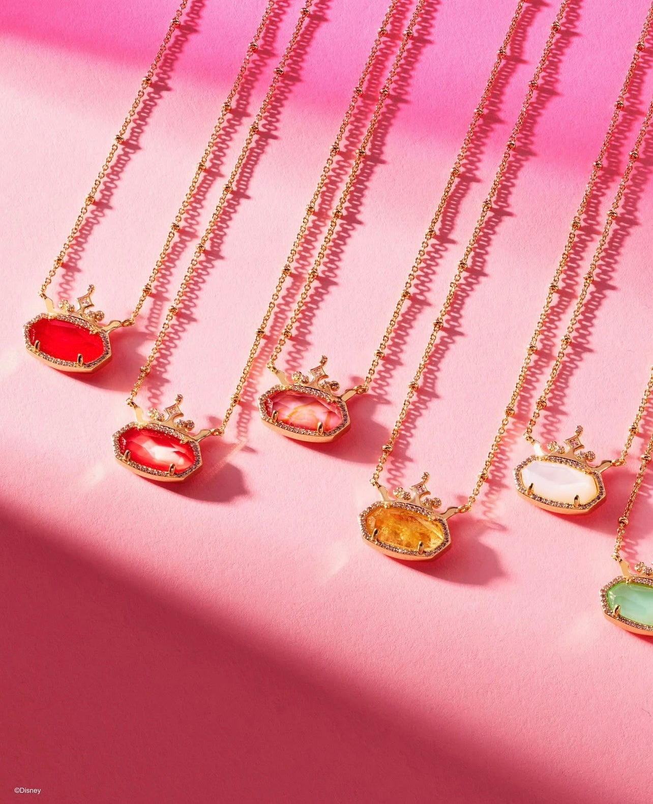 A style fit for a princess, meet the Disney | Kendra Scott Elisa Princess Gold Short Pendant Necklace. Featuring our bestselling Elisa shape embellished with a sparkling crown accent, this reversible necklace is where style dreams come true. All you have to do is pick the Disney Princess-inspired color and unique trait that means the most to you.