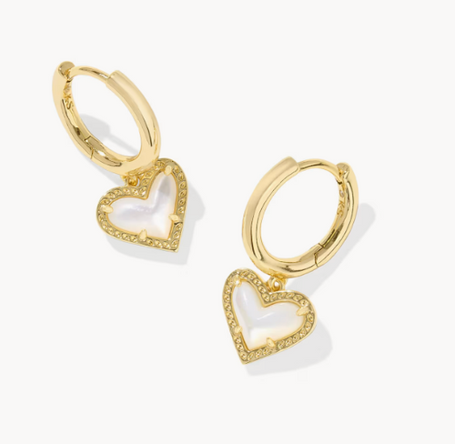 Kendra Scott Ari Heart Ivory Mother of Pearl Huggie Drop Earrings